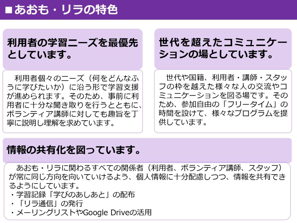 >>あおもり学び直しスペース(自主夜間中学)“あおも・リラ”実施要綱(PDF:590KB)